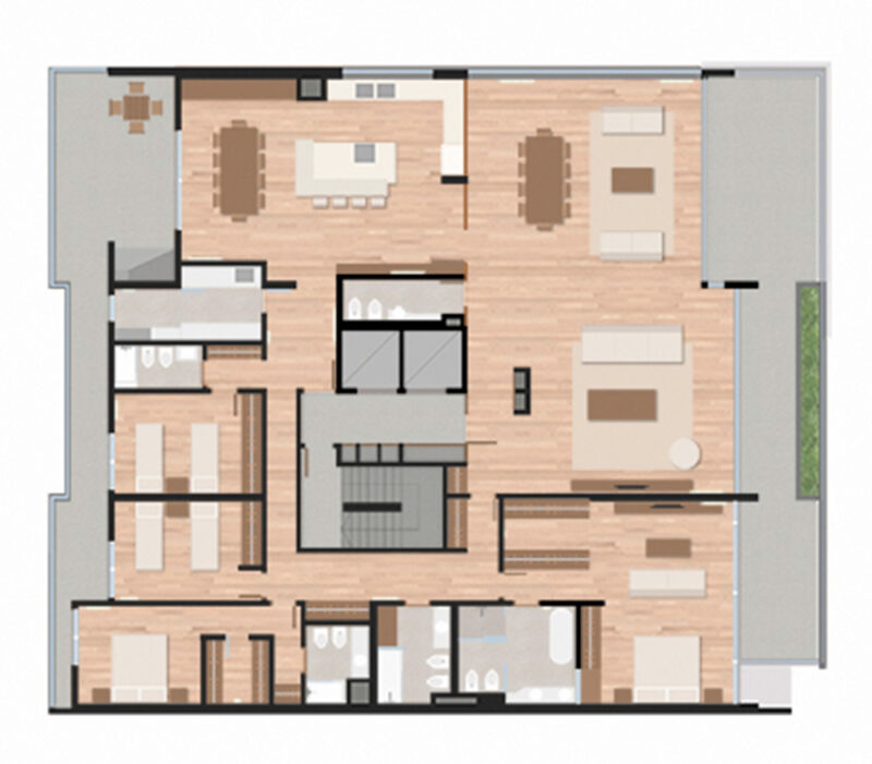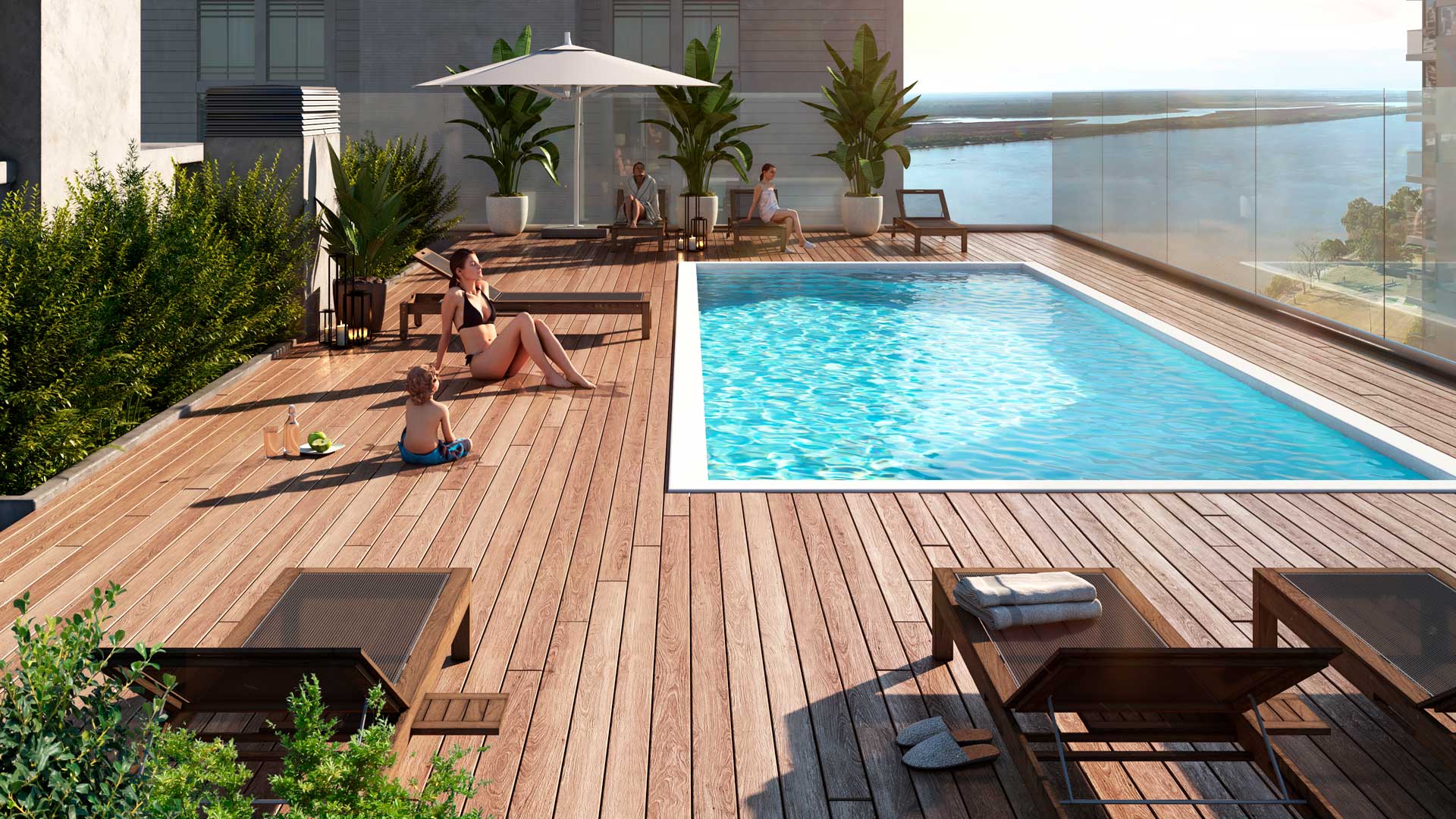 Unidades residenciales de alta categoría ubicadas en una de las zonas más exclusivas de Rosario, donde se fusiona el paisaje del Río Paraná y el Parque España, con la proximidad del centro de la ciudad.